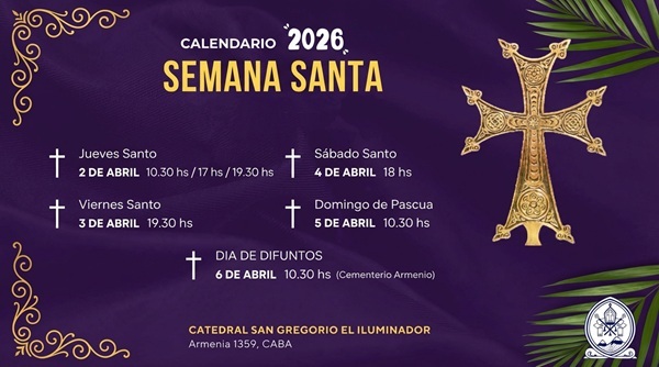 La Iglesia Apostólica Armenia celebra los días más sagrados del año cristiano. A continuación, el calendario de los actos litúrgicos y las ceremonias que se realizarán desde este Jueves Santo hasta el Día de Difuntos, invitando a toda la comunidad a participar de estos momentos de fe, memoria e identidad.