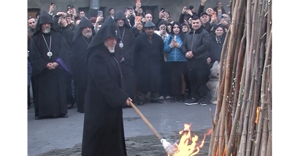 Al finalizar el oficio, la procesión de clérigos se dirigió al patio del complejo monástico de la Santa Sede, donde, en presencia de numerosos fieles, el Katolikós de Todos los Armenios encendió la hoguera de Dearn'ntarach. También obsequió cruces a los fieles.
